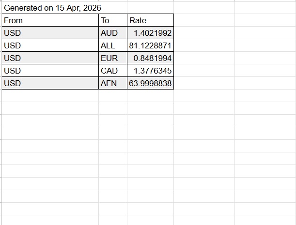 Finally, click "Execute" to generate the report in your chosen currency, and it will appear in your Google Sheet.