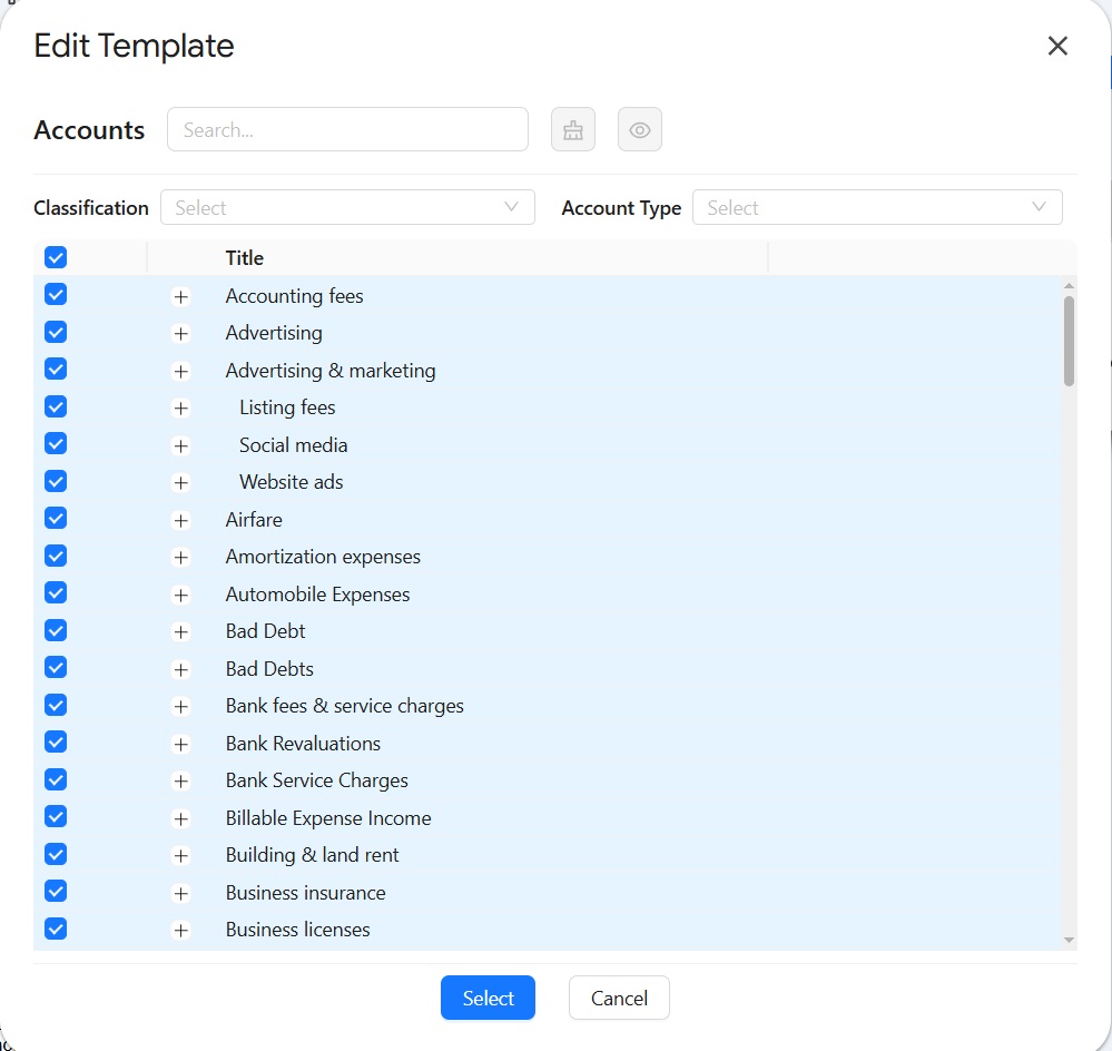 Display Only Account Codes: Display only account codes instead of full account