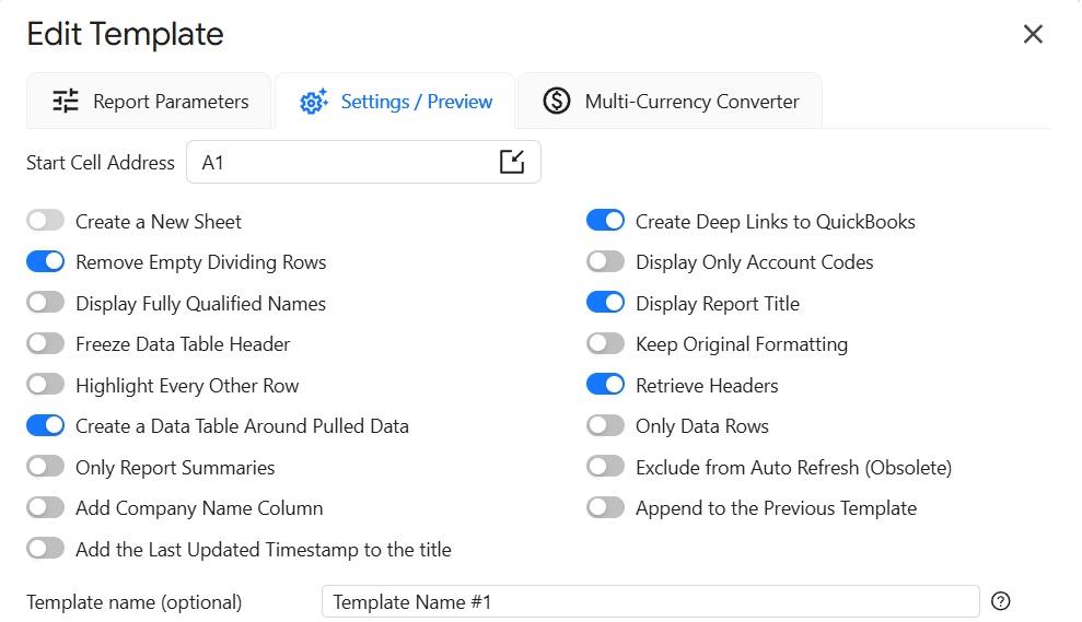 You can also provide the start cell, for instance, A1. And provide the name of the template in Template Name field, for instance, Template Name #1.